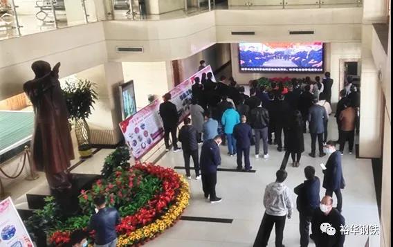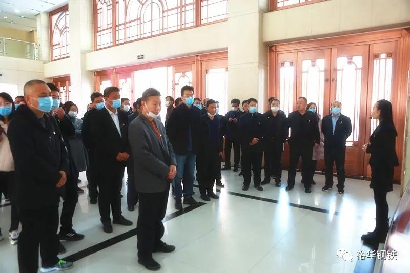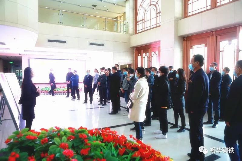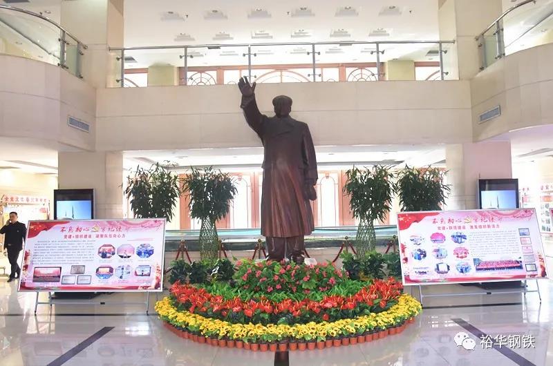 剛進集團辦公樓一樓大廳,觀摩團成員便被眼前濃郁的黨建氛圍所吸引。鮮花叢中,高達三米的毛主席銅像巍然屹立在大廳中央,昭示著冀南鋼鐵集團堅定不移聽黨話、跟黨走的決心和意志,六大板塊圖文并茂的黨建宣傳展板在銅像兩側(cè)依次擺開,令人一目了然。