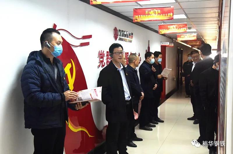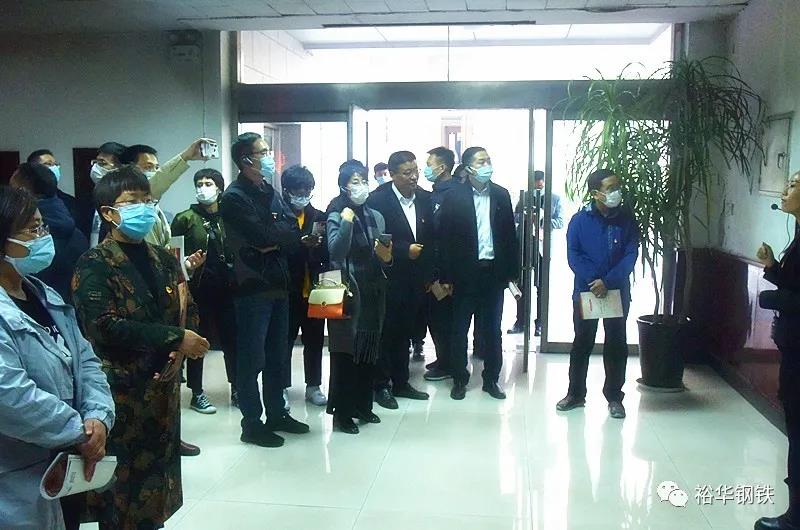 在七樓黨群活動中心,觀摩團依次參觀了七樓黨群圖書閱覽室、黨群談心室、健身活動室、黨員活動室、檔案室以及集團武裝部、團委、關工委、紀委和工會的辦公場所,聽取了講解員就幾位優(yōu)秀黨員先進事跡的介紹。黨委委員孫紅明也向觀摩團一行匯報了集團在黨建引領下的工建、團建以及黨工共建的工作情況。健全的機制、完善的設施、主題鮮明的黨建宣傳氛圍,達到了黨建工作的“六有”標準,也贏得了觀摩團一行的嘖嘖稱贊。